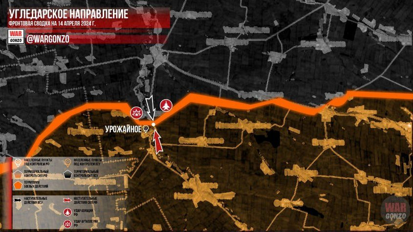 Обновленная карта боевых действий из зоны СВО на Украине от 14.04.2024