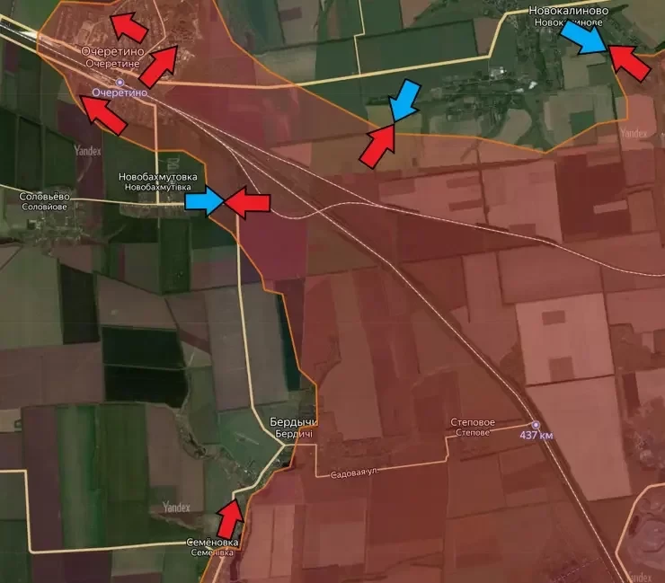 В понедельник, 22 апреля штурмовые группы ВС РФ после взятия южной окраины поселка Очеретино пересекли железнодорожное полотно и закрепились в центральной части населенного пункта. Достигнув сквера и парка Победы рядом с ж/д станцией, часть штурмовых подразделений ВС РФ развернулись в сторону очеретинского водоканала, другие продолжили давить украинские опорники вглубь, ближе к промзоне и заброшенному кирпичному заводу «Альтком». На его территории долгое время возводилась сеть укреплений ВСУ, однако, удерживать промзону украинская армия не смогла.