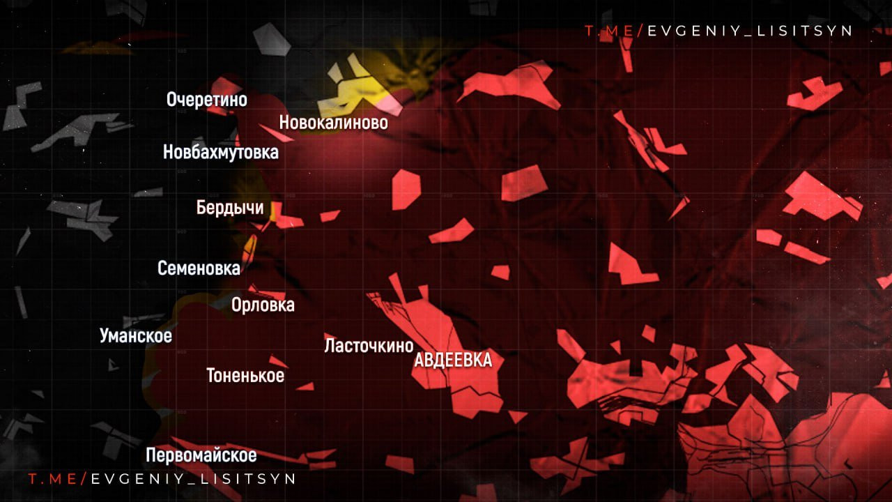 Западнее Авдеевки главным событием стала дерзкая атака ВС России, позволившая закрепиться в Очеретино. Предстоит еще зачистка населенного пункта и закрепление в нём. Вклинение в оборону противника составило до 5 км. Продолжаются бои у соседнего Новокалиново.