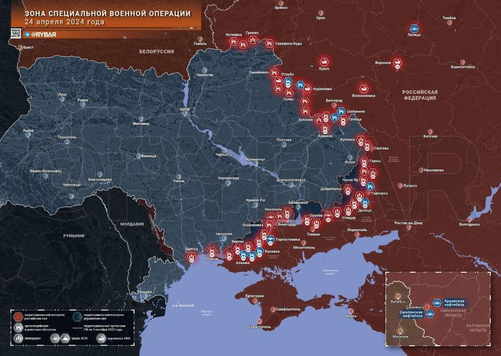 Оперативная сводка от 25.04.2024 - карта боевых действий, ситуация на фронтах Украине, ход специальной военной операции (СВО). Все самые последние новости из зоны СВО - читайте в новом материале сайта echonedeli.ru.