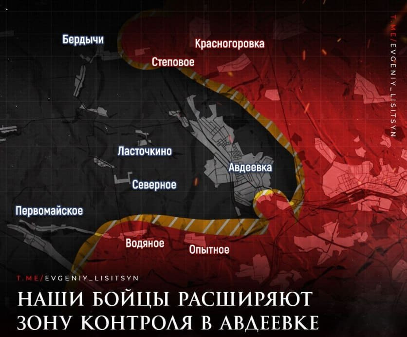 Российские бойцы расширяют зону контроля в Авдеевке, пишет военкор Евгений Лисицын в своём Telegram-канале. На данный момент враг цепляется за каждый метр.
