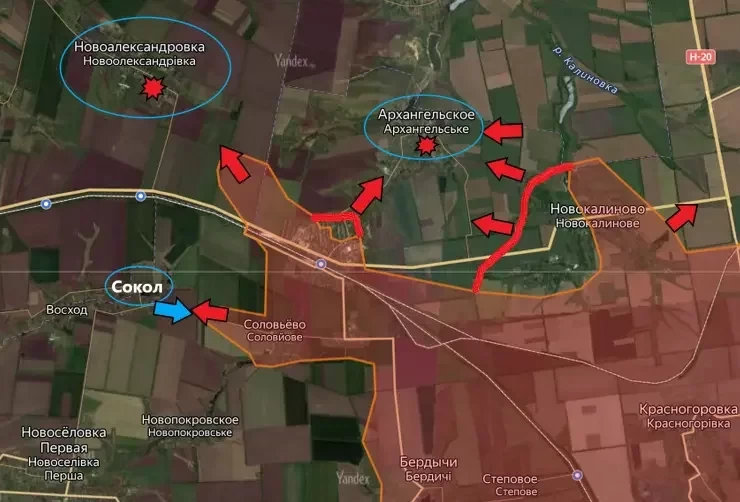 По последним данным, армия РФ также приблизилась к трассе Н20, контролируя подходы к Новоалександровке, и продвинулась к подступам к Новопокровскому от стороны Соловьево.
