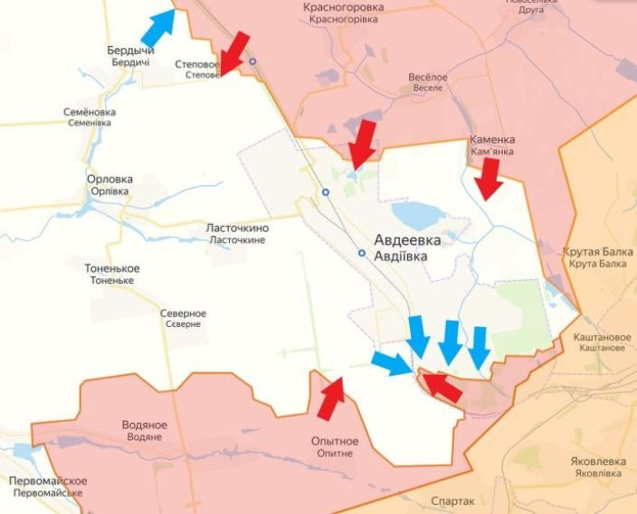 Сообщается, что ВС РФ применили хитрый и обманный манёвр, что позволило зайти в тыл укрепрайона "Царская охота" в Авдеевке. Обеими сторонами этот успех признаётся как очень значительный, так как теперь оборона ВСУ в Авдеевке критически ослабла.