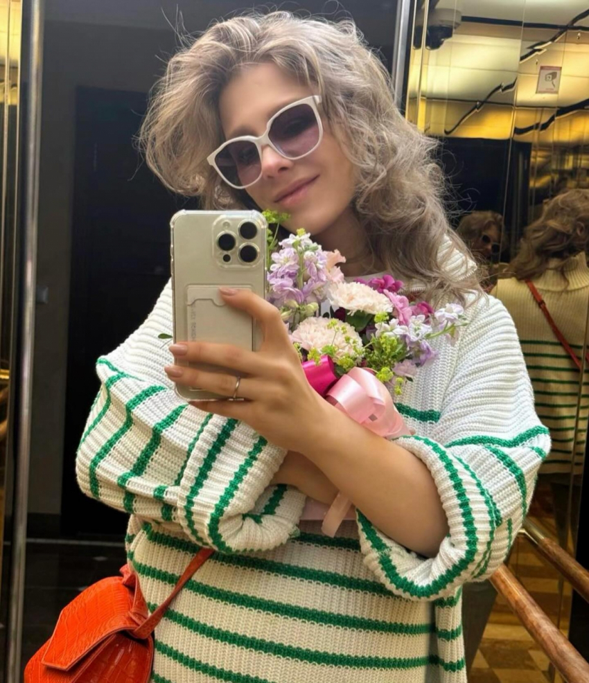 Арзамасова рассказала, что, несмотря на свою беременность, она продолжает активно работать, репетирует церемонию премии «Хрустальная Турандот», а также ощущает себя счастливой благодаря поддержке семьи. Артистка поделилась, что ее утро началось с посещения кафе вместе с мужем и сыном, которые подарили ей цветы, что вызвало нежные чувства.