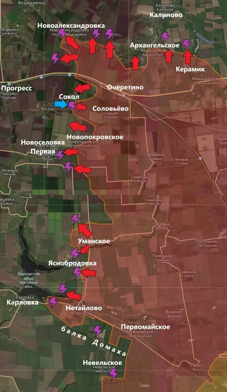 Армия России постепенно выдавливает украинские войска с позиций на Покровском направлении. Успешное продвижение российских войск поддерживается авиацией, которая наносит высокоточные удары по позициям противника.