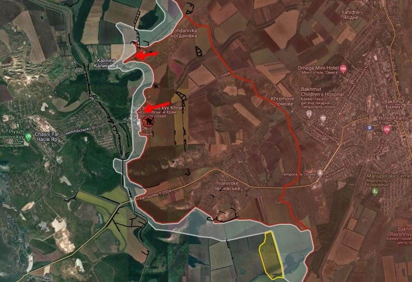 На ЧасовЯрском направлении ВС РФ давят в Калиновке, закрепились в центре села.