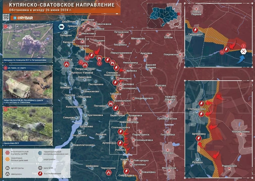 Сводки с различных направлений в зоне СВО, а также карты боевых действий на Украине на четверг, 27 июня 2024 года. Российские войска не снижают наступательные темпы, нанося противнику серьёзный урон, что подтверждается рядом независимых источников.