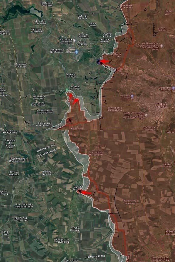 На Торецком направлении ВС РФ в Пивденном (Артёмово) имеют тактические успехи в западной части, продвинулись в глубь до 1км. В Нью-Йорке (Новгородском) продолжаются позиционные бои у «Фенольного завода». Российские войска ведут штурмовые действия на восточной окраине Зализного.