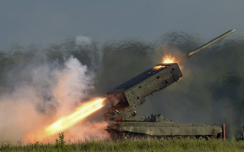 Экипажи тяжелой огнеметной системы ТОС-1А «Солнцепек» ударили по позициям украинских националистов, которые обосновались к северу от Вербового в Запорожской области.
