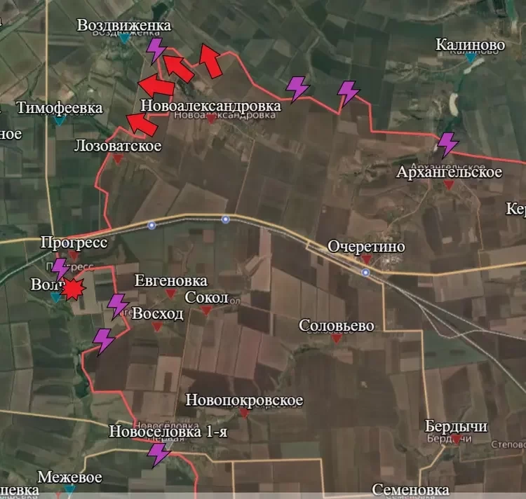 После взятия под контроль Армии России населённого пункта Прогресс наши бойцы закрепляются там. Скорее всего, в ближайшее время мы будем наблюдать расширение зоны контроля, чтобы выравнять линию фронта на этом участке. По сути, бои западнее Евгеновки и Восхода уже идут. Из самого Прогресса атаки пойдут на Волчье, находящееся сейчас под контролем ВСУ. По селу уже идёт артподготовка.