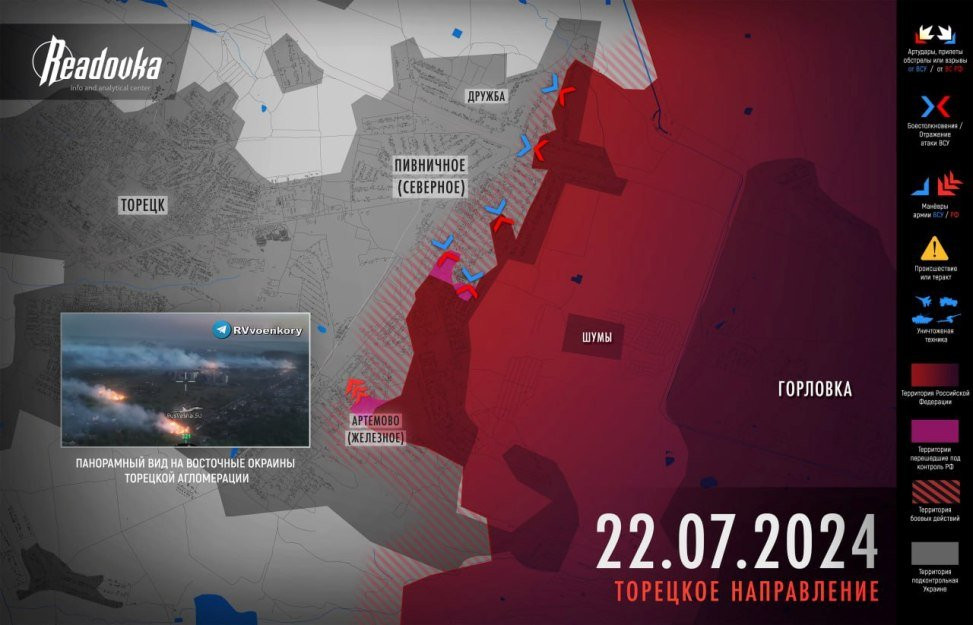 В Торецкой агломерации русские войска полностью заняли квартал многоэтажек в микрорайоне Северное по улицам Юности и Новой и ведут бои за дом культуры. Кроме того, передовые штурмовые отряды закрепились на окраинах улиц Федорова и Гризодубовой. Наступают ВС РФ и на стыке Северного и Дружбы, где наши бойцы методично приближаются к шахте «Северная» и ее террикону, информирует Telegram-канал Readovka.