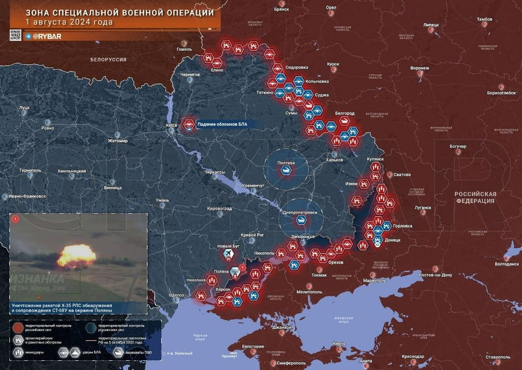 Новая карта боевых действий в зоне СВО на Украине сегодня, 2 августа 2024 года