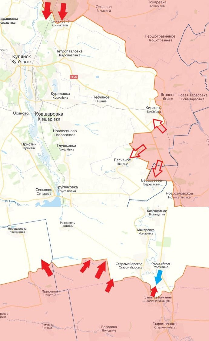 Запорожское направление. Северо-западнее Вербового, ВСУ удалось взять под контроль западную лесопосадку, так сообщают десантники. Противник активно использует артиллерию, кассетные боеприпасы и дроны по нашим позициям. Ночью дроны типа "Баба Яга" сбрасывали мины, создавая препятствия для продвижения. В ответ на это, наша авиация нанесла удары по противнику с использованием ФАБ и УМПК. На Времевском выступе ВС РФ проводили наступательные действия севернее Приютного, взята небольшая часть опорников.