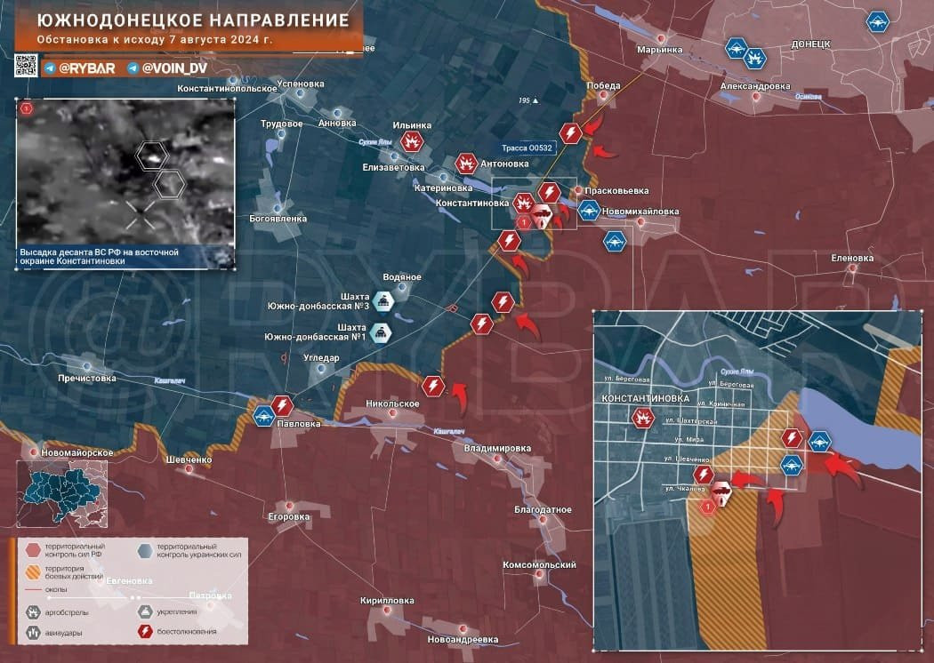 Новая карта боевых действий в зоне СВО на Украине от 8 августа 2024 года
