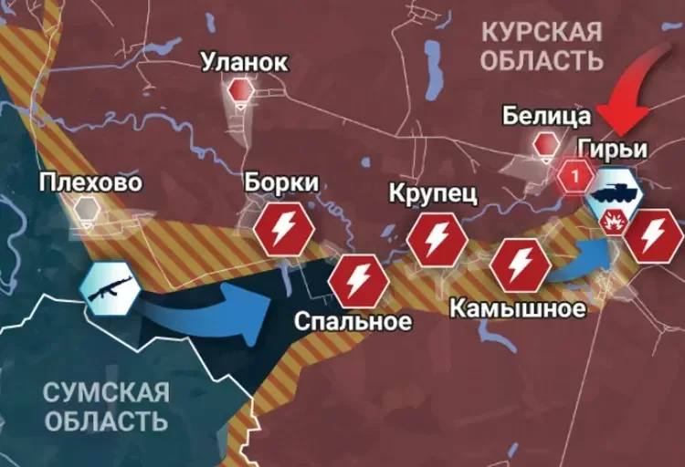 Карта боевых действий в Курской области по состоянию на вторник, 13.08.2024