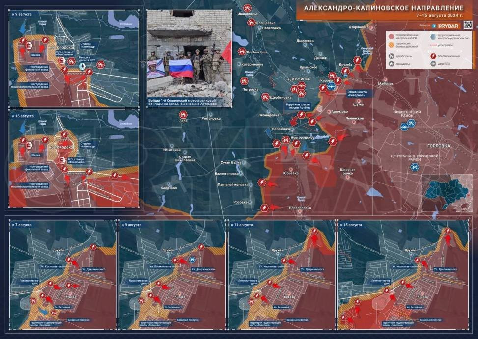На Александро-Калиновском направлении российские войска значительно продвинулись на подступах к Дзержинску и практически полностью освободили Кирово. В Новгородском ВС РФ полностью заняли восточные окраины населенного пункта и зачистили карман между Новгородским и Балкой Широкой.