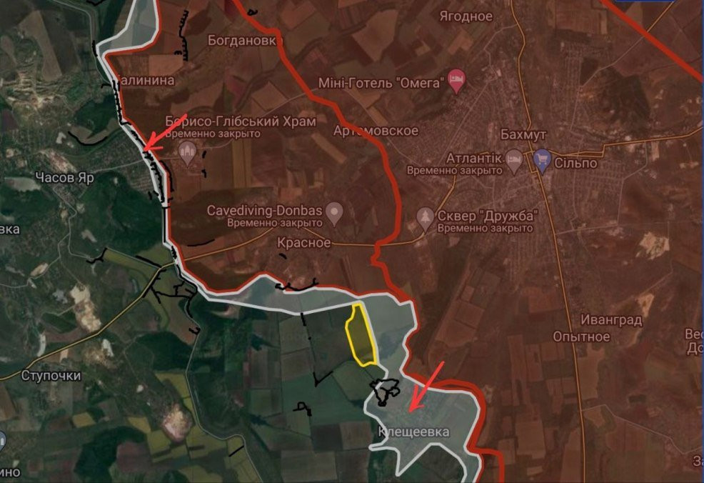 На ЧасовЯрском направлении ВС РФ ведут штурмовые действия западнее канала "Северский Донец–Донбасс" вдоль улицы Мариупольская в восточной части мкр. Октябрьский. Имеются тактические успехи в районе Клещеевки. Об этом сообщает Telegram-канал "БелВПО".