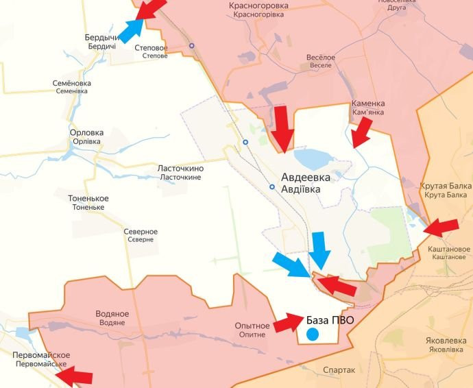 Карта боевых действий под Авдеевкой по состоянию на 03.02.2024