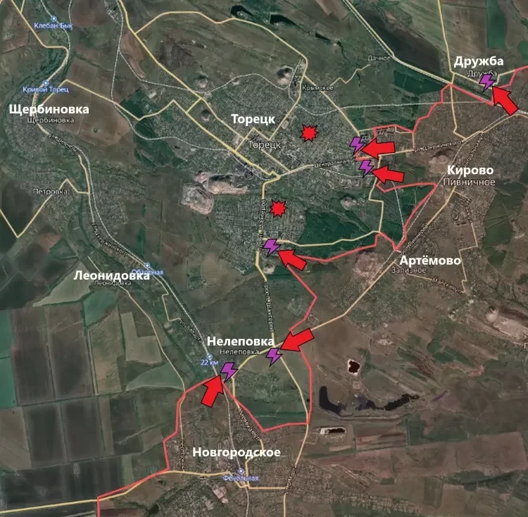 Также успехи ВС РФ наблюдаются и в зоне между Гродовкой и Новогродовкой. Сообщается, что подразделения ВС РФ полностью зачистили Красный Яр и Крутой Яр, после чего начали штурм населённого пункта Николаевка.