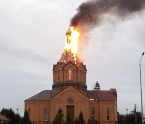 Уже было шесть попыток разрушить храм. Во время седьмой атаки утром 3 сентября купол церкви и иконостас были полностью уничтожены, а основная часть храма выгорела, сообщают "Аргументы и Факты".