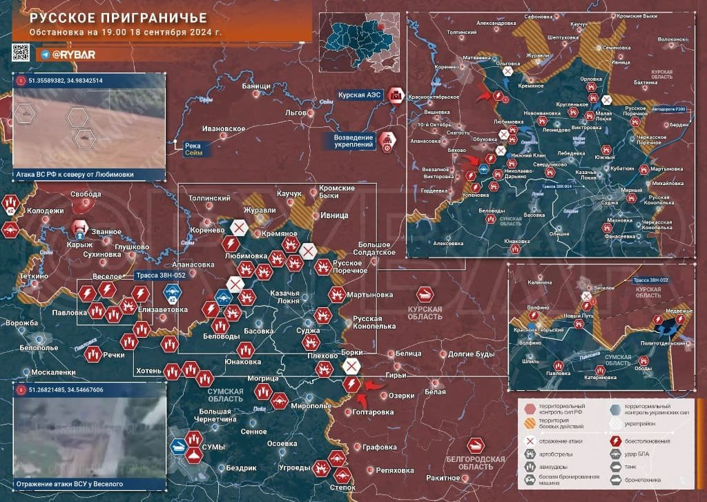 Свежая карта боевых действий в Курской области от 19.09.2024. ВС РФ удалось продвинуться в Кореневском районе. Обстановка в приграничье на сегодня