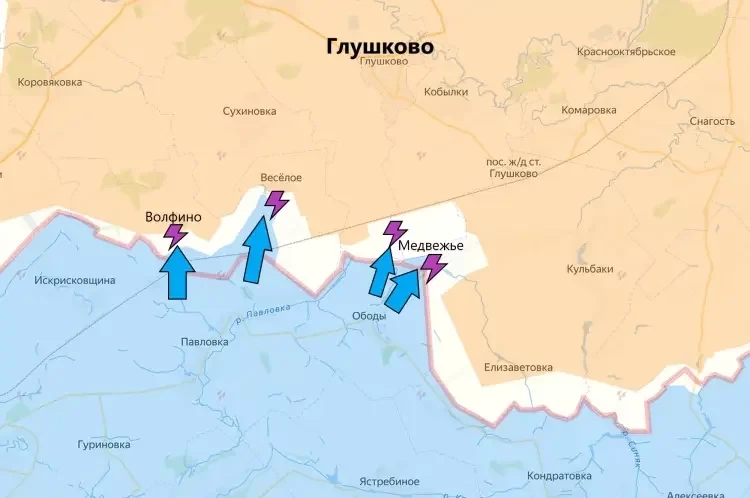ВСУ пробуют прорваться также в районе села Медвежье, где смог штурмом взять один из опорных пунктов, информирует PulsePen.