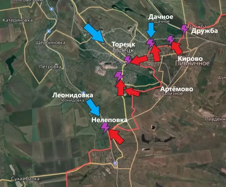 На Торецком направлении продолжаются атаки российских войск со стороны Новгородского в Нелеповке. Интенсивные бои идут как на южной и северной окраинах, так и на востоке и в центре города.