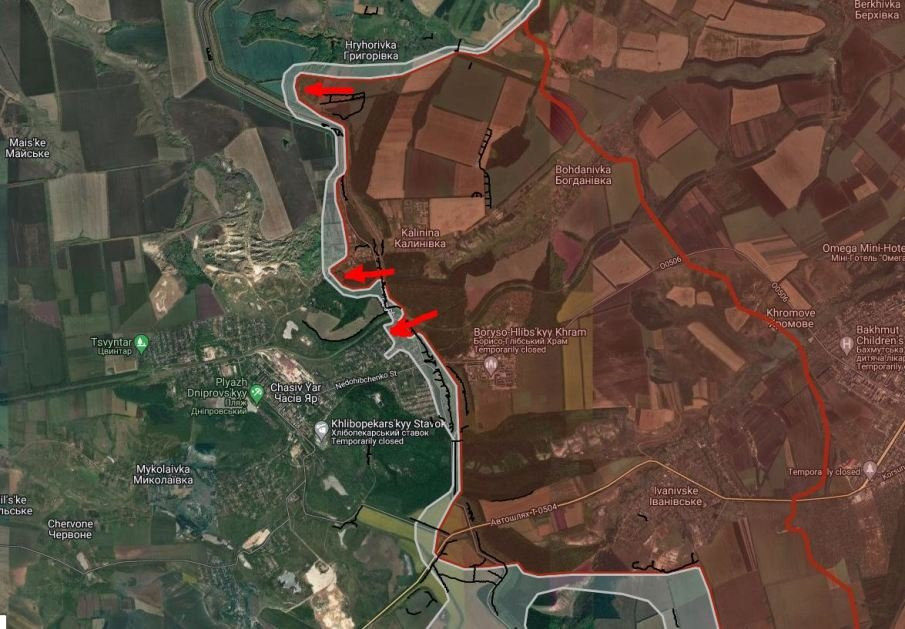 На ЧасовЯрском направлении ВС РФ имеют тактические успехи западнее Григоровки и Калиновки, продвинулись в западном направлении в мкр. «Октябрьский».