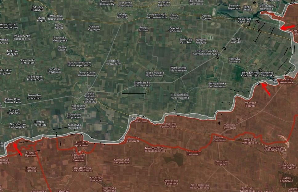 На Покровском направлении южнее Селидово российские войска продвинулся вдоль железной дороги в северо-западном направлении на глубину до 650 м. ВС РФ расширили контроль территории западнее Цукурино.