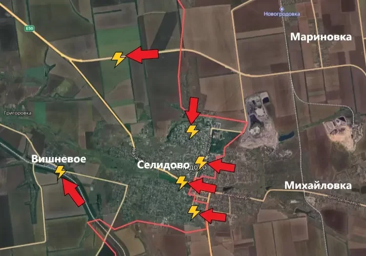 Юго-восточнее российские войска продвинулись вдоль улицы Чкалова мимо ферм в направлении Селидовской ЦГБ, взятие которой ознаменует падение обороны ВСУ к югу от нее. В ходе боя группа украинских военнослужащих попала в засаду, бронеавтомобиль был подбит выстрелом из РПГ, а группа зачистки пленила нерадивого противника. Таким образом, продвижение в границах города становится все более существенным.