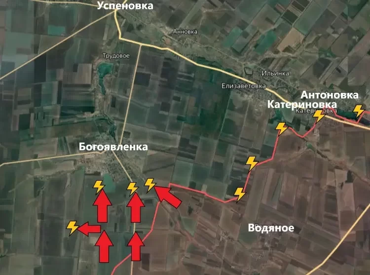 На Успеновском направлении подразделения ВС РФ закрепляются на подступах к Богоявленке. Некоторые источники сообщают, что нашим штурмовикам удалось зайди на юго-восточные окраины села, однако, эта информация пока что не подтверждена. Продолжаются бои в центре Катериновки и на восточных окраинах Антоновки.