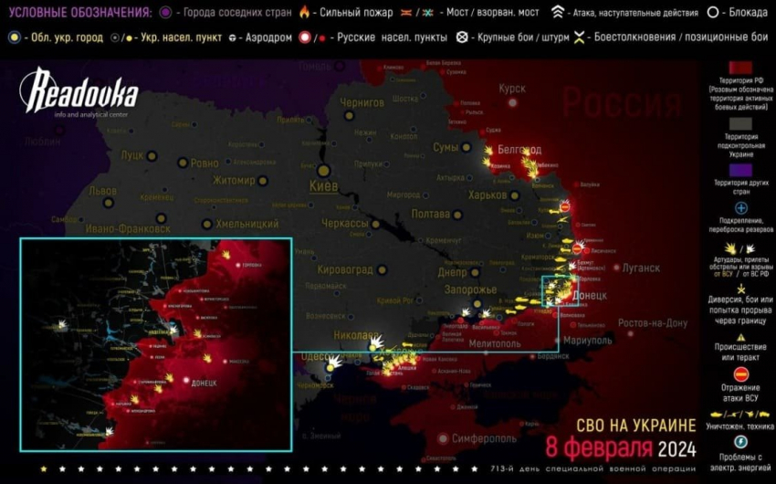 Актуальная сводка на сегодня, 09.02.2024 — карта боевых действий, ситуация на фронте на Украине, ход специальной военной операции (СВО), а также военно-политические новости в мире, которые связаны с военной спецоперацией — в материале нашего сайта N4k.