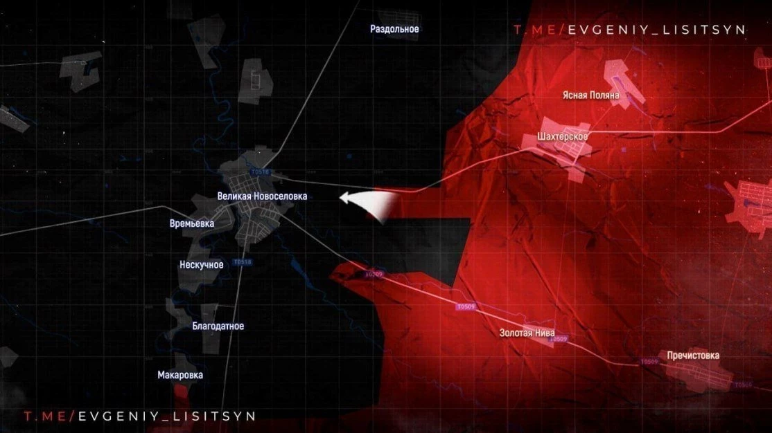На Южно-Донецком направлении наши парни зашли в тыл обороны противника с востока. Штурмовым подразделениям 37 гвардейской мотострелковой бригады удалось существенно продвинуться к югу от Великой Новосёлки сократив расстояние до южных границ до нее до 4,5 км и до восточных границ Благодатного до 2,2 км.