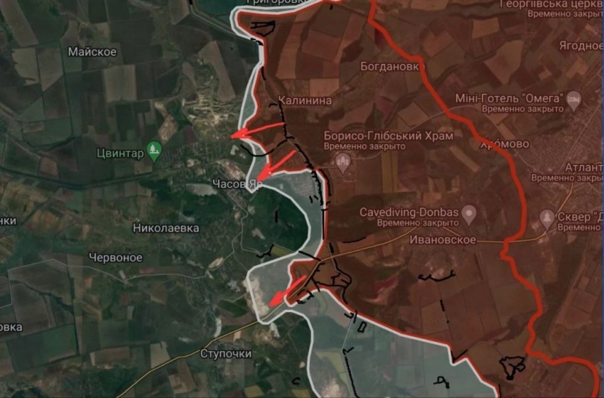 В районе Часов Яра ВС РФ продвигаются в лесном массиве. Судя по информации с мест, наши войска усилили натиск и севернее города, от Калиново, и южнее - вдоль трассы на Константиновку, охватывая город по большой дуге.