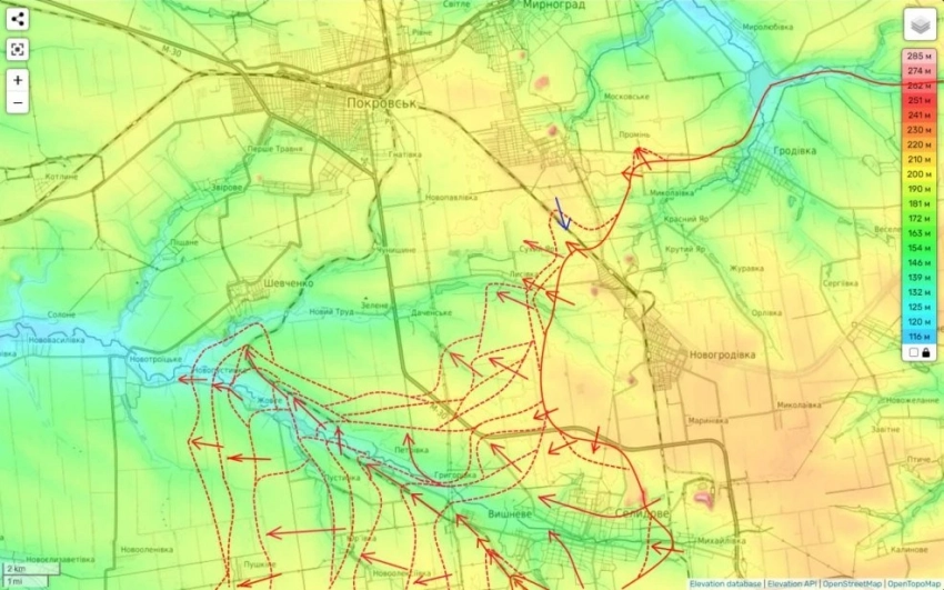 "Хорошие, хотя и ожидаемые, новости поступают из района Покровска. Где наши части продолжают наступать в обход города с юга. И при этом, они сегодня утром сумели физически перерезать трассу Покровск-Курахово южнее н.п. Шевченко.