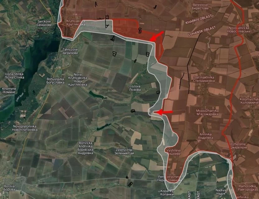 На Купянском направлении ВС РФ наступают на Боровую с двух сторон - с востока и с севера. ВСУ стягивают силы к Двуречной, пытаясь удержать плацдармы на западном берегу Оскола.