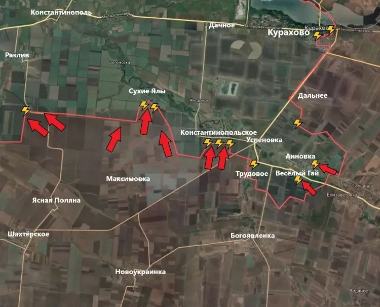Западнее Успеновки у ВС РФ есть успехи. Штурмовые отряды Армии России приблизились к окраинам Константинопольского. Сообщается о начале боёв за населённый пункт. Ещё чуть западнее наши бойцы подобрались к окраинам населённого пункта Сухие Ялы. Воины-дальневосточники пишут, что враг оказывает здесь очень ожесточённое сопротивление, и бои за населённые пункты будут тяжёлыми и кровопролитными.