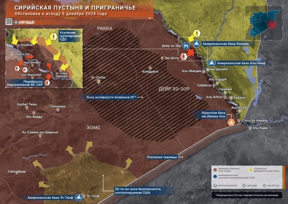 И хотя минувшая атака арабских частей СДС при авиационной и артиллерийской поддержке ВС США потерпела полную неудачу, те открыто дали понять о своих планах взять реванш. Что может произойти уже в ближайшее время по мере ухудшения ситуации в других провинциях страны.