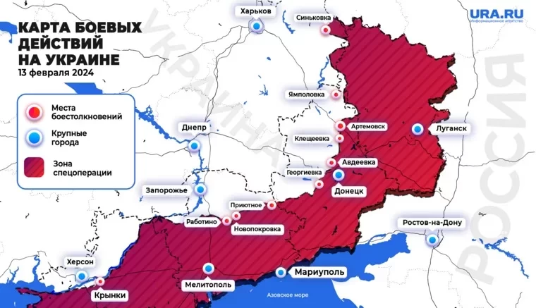 Уточнённая карта боевых действий на Украине от 13.02.2024: военная сводка из зоны СВО