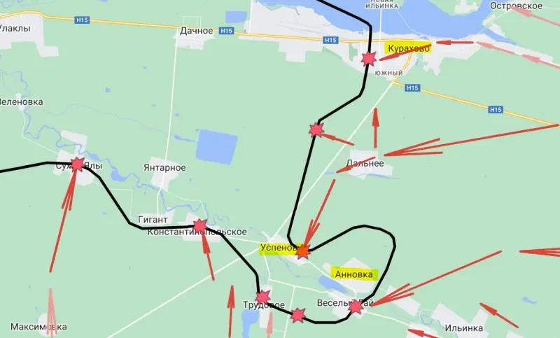 Еще хуже ситуация к югу от Курахово, в так называемом «кармане», где российские войска расширили зону контроля, заняв мощный укрепрайон ВСУ, тем самым взяв Успеновку и Анновку в оперативное окружение. И если из Успеновки еще выйти можно, то из Анновки сделать это будет трудно. Также «Мучной» подтвердил заход российских войск в село Константинопольское.