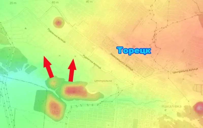 Одновременно с этим позитивные новости приходят и из Торецка (Дзержинска). Там российские войска после взятия под контроль высот, представляющих собой терриконы шахты Центральная, ускорили продвижение в черте города. Это подтверждается и противником. Наибольшая высота терриконов там составляет 70 м. Это господствующая высота на местности.