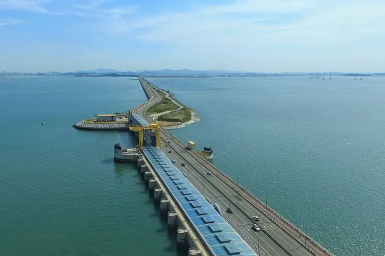 В Южной Корее теперь самая мощная приливная электростанция в мире. Она расположена в заливе Сихва, в 40 км к юго-западу от Сеула и западнее города Ансан. Это впечатляющее сооружение. Дамба электростанции имеет протяженность 12,7 км, площадь отгороженного залива — 56,5 кв. км. Мощность приливной электростанции 254 МВт, среднегодовая выработка 550 млн кВт·ч электроэнергии.