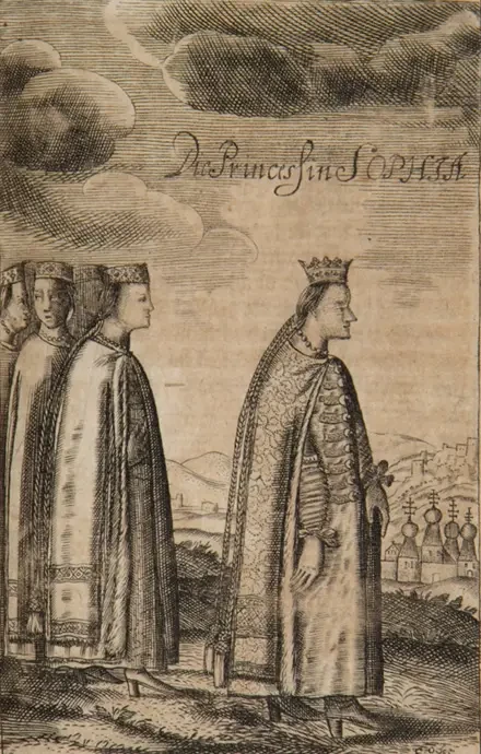 Портрет Софьи из книги А. Г. Шлейссинга «Anatomia Russiae deformatae», 1680-е гг.