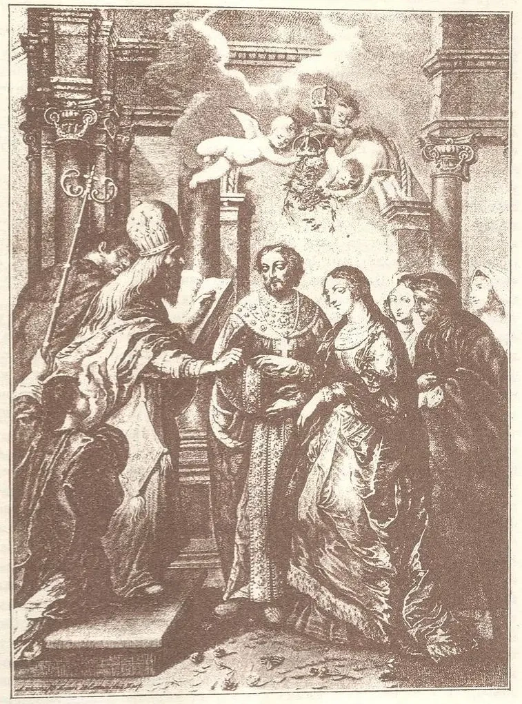 «Свадьба царя Алексея Михайловича и Натальи Нарышкиной». Гравюра XVII века
