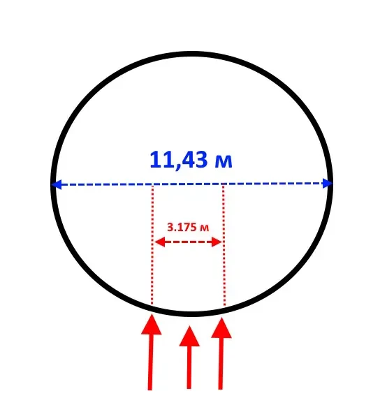 Теперь посмотрим на барбеты того же «Микасы». Предполагая, что их геометрические размеры совпадают с таковыми на «Асахи», получим, что ширина барбета (внешняя) составляла порядка 37,5 фута или 11,43 м, а высота — примерно 6,4 м. Площадь получается тоже весьма небольшой, но все же больше, чем у цитадели — 73,16 кв. м. Кроме того, барбетов у броненосца все-таки два. Но проблема в том, что круглый барбет никак не может быть поражен снарядом по всей своей ширине. Для того чтобы обеспечить отклонение от нормали попадающего в барбет снаряда в размере 0-25 град., требуется поразить его не далее, чем на 1,6 м (грубо) от осевой линии.
