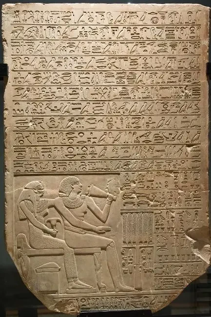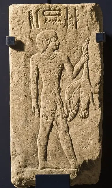 Рельефный блок из гробницы Хени. ок. 2100-2050 гг. до н. э. XI династия. Размеры: высота 72 см, ширина 34 см. Дата поступления: 1924 г.