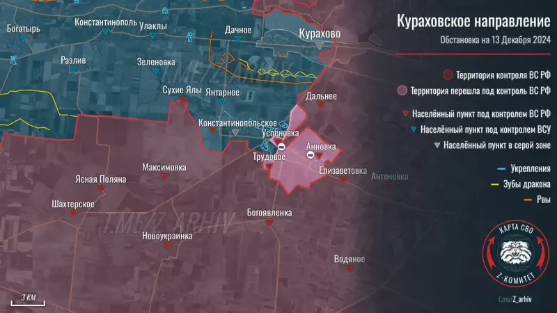 Российские войска продолжают ликвидацию так называемого «кармана» к югу от Курахово, под контроль ВС России перешла Анновка, и на очереди Успеновка. Украинские военные подтверждают потерю населенных пунктов и критическую ситуацию на данном направлении.