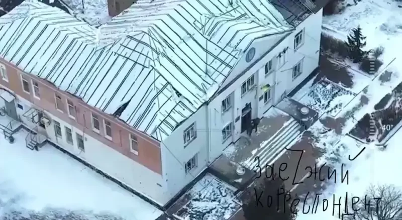 Видео снято с беспилотника, который наверняка перед смелой вылазкой провел разведку местности. На нем показано, как двое наших бойцов стремительным броском, двигаясь вдоль строений, врываются в здание горсовета через одно из разбитых окон. Сопротивления они не встретили, что означает — противник уже не контролирует эту часть города, она как минимум находится в серой зоне.