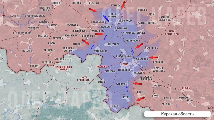 Есть продвижение на юге Суджанского района у реки Псёл - к Куриловке и Гуево.