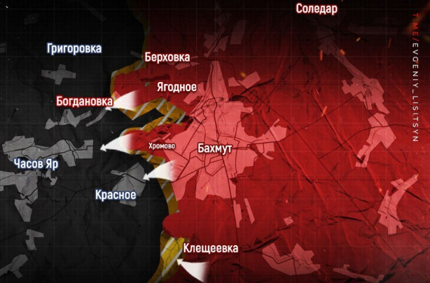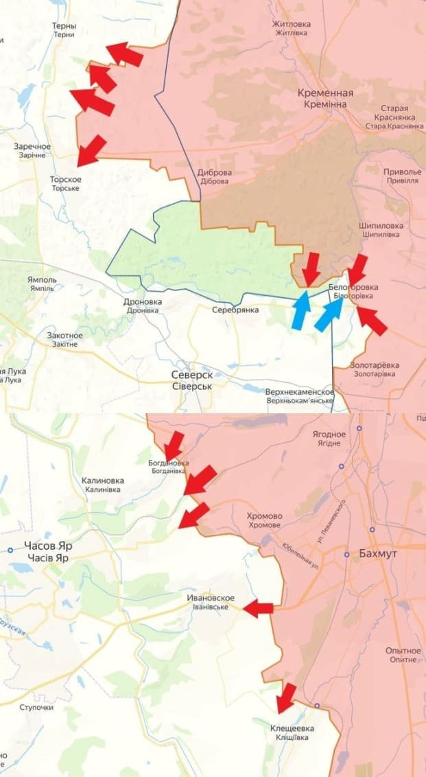 На Артёмовском направлении продолжается наступление ВС РФ в направлении Часова Яра. Наши войска расширили зону контроля в окрестностях Поповского леса. На северо-западе от Клещеевки продолжаются боевые столкновения.